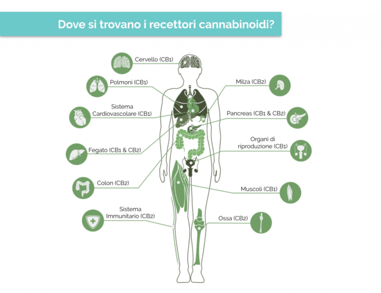 I recettori CB1 sono presenti soprattutto all’interno del cervello (ipotalamo e amigdala) e midollo spinale e nelle terminazioni nervose.